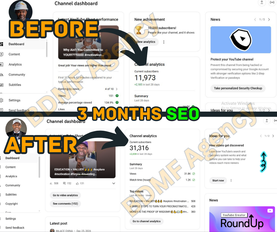 BDMF Agency did SEO and organic promotion for my YouTube channel My ACE CHINA, and the results are amazing! After their work, my videos started getting more views and the channel is growing really well. Highly recommend their service!